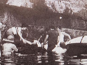 When the Keyes Pool opened in 1965, it spelled the end of quarry swimming. Well, at least officially — even today, a quick Youtube search will turn up outlaw videos of youngsters diving 80 feet or more into local quarries. But before the Keyes opening, as the Milford Cabinet put it, “generations of youngsters learned to swim and dive under conditions that would give any Red Cross lifeguard gray hairs.” Indeed, a dozen quarries around town, including the twin swimming holes of the Lovejoy Quarry, the Pease Quarry in South Milford, Tonella’s in East Milford, and Roberts Quarry — the last to close — near Mont Vernon Road, were popular spots for family swimming. Many were used with the silent assent of the owners. The allure was unmistakable. As the Nashua Telegraph put it, “One finds high marbled headwalls 75 feet high variegated with a myriad of changing red, grey and blue patterns.” Beautiful but also potentially quite dangerous. 23-year-old Richard Paquette of Manchester died after diving from a 10-foot rock in July 1958, hitting a projecting ledge and fracturing his neck — just one of many such accidents that happened both before and after quarry swimming was tacitly permitted.
