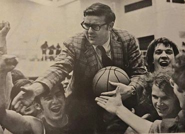 In the third quarter, the Little Green came all the way back. Numerous Milford turnovers and strong shooting from Central had Milford clinging to a one-point lead entering the final quarter. As it turned out, the Milford boys had it all the way. In the fourth quarter, big man Joe Raymond repeatedly hit from the foul line and Calderara continued to drive and score even as Mark Lehr fouled out. When the buzzer sounded, Milford had their first championship — 79-71 winners. Fans poured onto the court, hugging players, congratulating Coach Facques, chanting their own dominance.