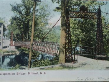The Swing Bridge, however, has certainly seen better days. Perhaps all those forbidden bike rides and frolicking bouncers have caught up to it but, as its last makeover came during Milford’s 1975 bicentennial celebration, the Swing Bridge is now suffering from bent trusses, severed wires, and peeling paint. When an engineering firm issued a report on the bridge’s safety in 2015, it received a poor grade and a life expectancy of five to ten years. Since then, there has been an unsuccessful push to include it on the NH Preservation Alliance’s “Seven to Save” and a successful bid to place it on the National Register of Historic Places. Today, the bridge is thankfully on NHDOT’s Ten Year Transportation Improvement Plan and according to Milford’s website, the rehabilitation “is fully funded and slated for engineering and construction in 2024.” It seems the old bridge may have a few swings left in it yet.