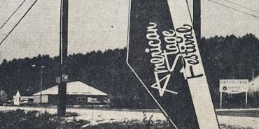 Above Left: Someone knocked down the sign at American Stage Festival in 1975.